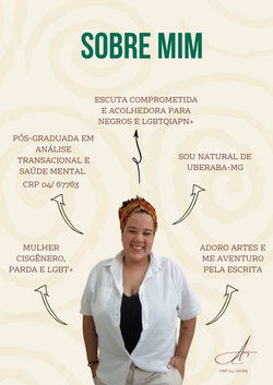 Psicóloga formada pela UNIUBE, especialista em Análise Transacional e pós-graduada em Saúde Mental e Atenção Psicossocial. Atuo com uma escuta sensível e comprometida com o cuidado integral, acolhendo especialmente pessoas negras e LGBTQIAPN+ que buscam um espaço seguro para se reconhecer, elaborar vivências e fortalecer sua identidade.